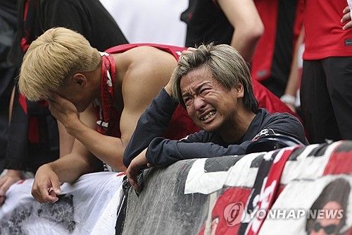 한국의 울산HD와 일본의 우라와 레즈가 대회 2연패로 동반 조기 탈락이 확정되자 일본 팬들이 탄식했다.