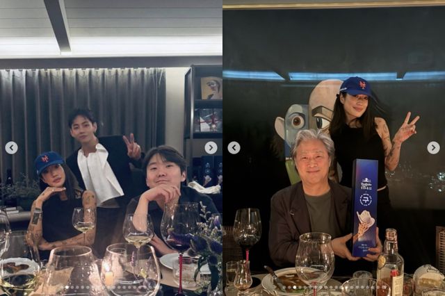 다양한 사진 중 눈기을 끄는 건 최근 전역한 방탄소년단 뷔, 피아니스트 조성진, 영화감독 박찬욱과 동석한 자리에서 찍은 사진이다. 이들의 ‘친목’이 관심을 끄는 가운데, 뷔가 지난 17일 박찬욱 감독과 서울 예술의 전당 음악당 콘서트홀에서 열린 ‘조성진 피아노 리사이틀-서울’ 공연을 관람하는 모습이 목격된 바 있어 당일 공연 후 만난 것이 아니냐는 의견이 나온다.