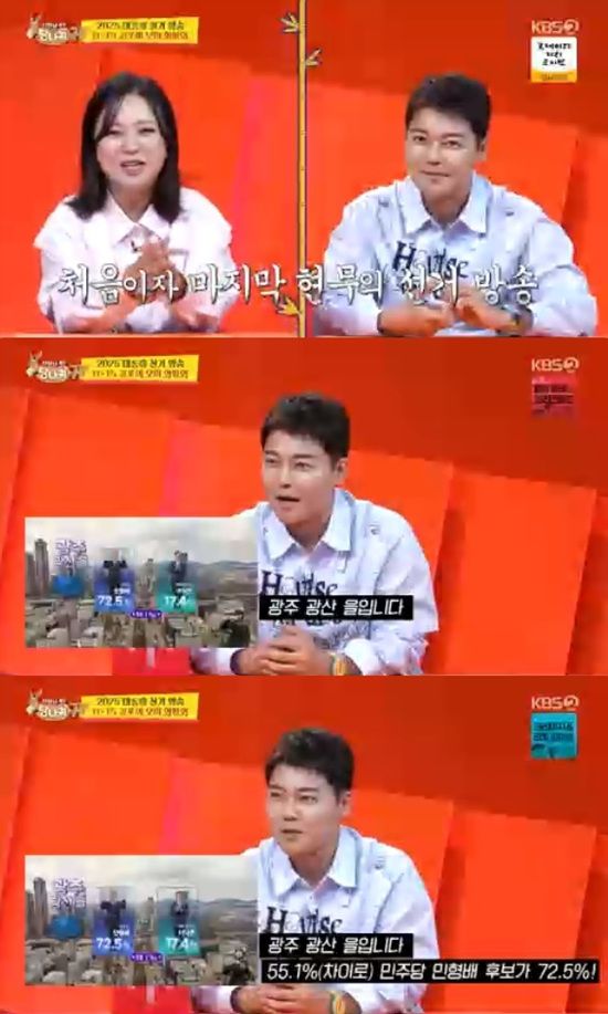 전현무는 생각보다 무난하게 해내는 모습을 보여줬다. 김숙은 "잘하는데? 해도 되겠다"고 말했다. 전현무는 "시켜줘"라고 개표방송에 욕심을 내 웃음을 자아냈다.