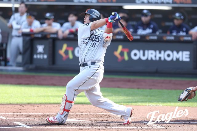 1회말 한화는 2사 주자 없는 상황, 문현빈이 중전 2루타로 기회를 살렸다. 이어 곧바로 나온 노시환의 안타에 홈을 밟으며 선취점을 만들었다. 노시환은 공이 빠진 사이 2루를 지나 3루까지 내달렸으나 3루에서 잡히며 이닝이 끝났다.