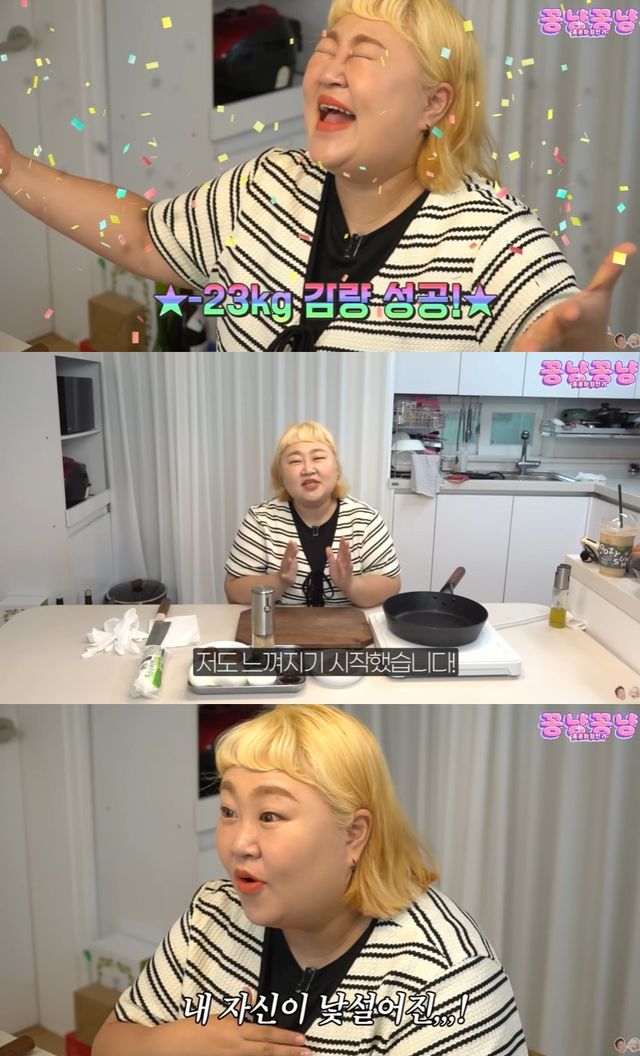 이어 "오늘 체중을 재봤더니 23kg가 빠졌다. 23kg면 웬만한 초등학생이다"라며 자축했다.