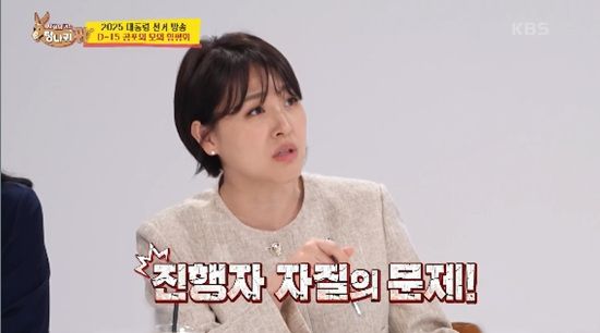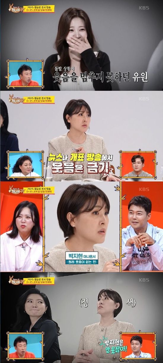 22일 방송된 KBS 2TV '사장님 귀는 당나귀 귀'에서는 엄지인, 박지현, 김진희 아나운서가 후배들을 교육하는 모습이 전파를 탔다.