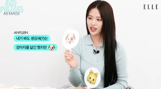 영상에선 아이브 안유진이 이모지 인터뷰를 하는 모습이 담겼다. “사람들이 보는 나 VS 내가 보는 나”에 대한 질문에 안유진은 강아지와 고양이 이모지를 들며 “사람들이 보는 나는 강아지상이다. 아무래도 강아지 닮았다는 말을 많이 하시고 안댕댕이라는 별명을 많이 불러주시는데 저는 솔직히 고양이 같다고 생각한다. 물론 생김새는 강아지 닮았다고 생각을 하는데 제가 생각하는 저는 경계심이 좀 있는 것 같은 그런 고양이와 비슷하지 않나, 그런 생각을 한다”라고 털어놨다.