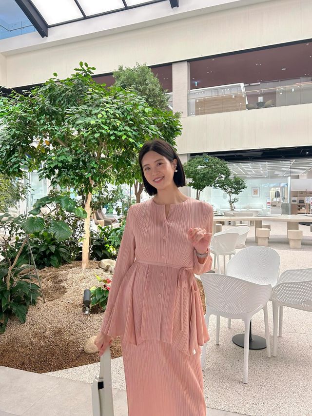 공개된 사진 속 현숙은 연한 핑크빛의 주름 디테일 롱 원피스를 착용하고 세련되면서도 우아한 자태를 뽐냈다. 언뜻 보이는 D라인이 눈길을 끈다.