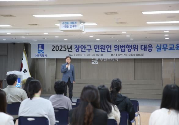 [와이뉴스] 수원시 장안구는 지난 20일, 공직자를 대상으로 ‘민원인 위법행위 대응 실무교육’을 진행했다고 밝혔다.