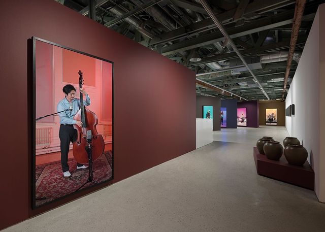 정연두 우선 컬러풀한 전시를 만들고 싶었고, 전시장을 들어갈 때와 나올 때 감각이 완전히 다른 맛의 전시를 만들고 싶었어요. 표면적으로는 툭툭 던진 듯 가벼운 인상이지만 그렇지 않은. 사실 작업하다 보면 실타래처럼 아주 디테일한 부분까지 꼬아 들어가게 되는 것 같아요. 또 국제갤러리 부산 위치상, F1963이라는 공간에 들어온 사람들이 우연한 발걸음으로 들르기 때문에, 물 흐르듯 돌아볼 수 있도록 했고요. 벽을 중앙에 세운 건, 공간 중앙 인포메이션 데스크와 관객의 시선을 단절해 들어갈 때는 뮤지션에 집중하되 나올 때는 뮤지션이 보이지 않는 동선을 고려했죠. 각각의 음악이 다른 색감을 가지듯, 숨바꼭질하듯 벽을 돌며 감상할 수 있길 바랐어요.