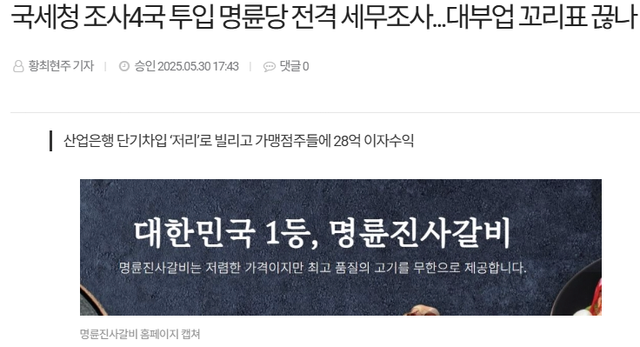 한번쯤을 들어봤을 유명한 프랜차이즈 체인점 명륜진사갈비