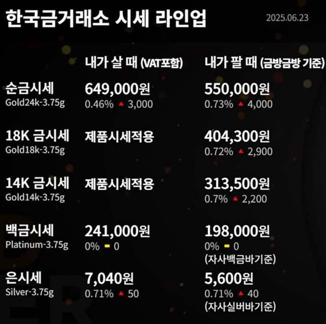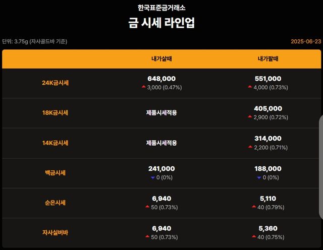 순금(24K) : 매입가 64만 9000원 / 매도가 55만 원