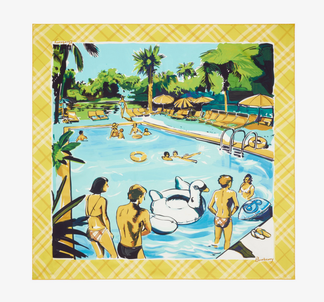 활기찬 여름의 열기가 느껴지는 풀 파티 모티프 프린트 실크 반다나 70만원 Burberry.