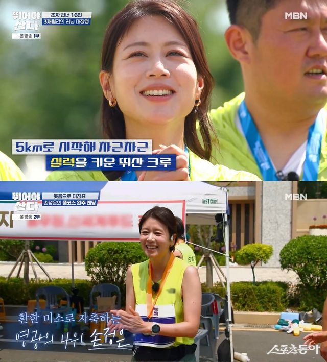 손정은은 21일 종영한 MBN ‘뛰어야 산다’에서 마지막 미션인 ‘풀코스 마라톤’ 도전해 성공을 거뒀다.