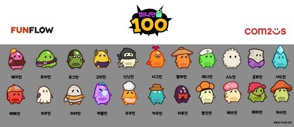 펀플로가 개발하고 컴투스가 글로벌 서비스를 맡은 ‘미니언100’은 여러 캐릭터를 소환시켜 매 스테이지마다 새롭게 등장하는 적 군단과 전투를 펼치는 게임이다. 간편한 터치 조작만으로도 손쉬운 플레이가 가능한 로그라이트 장르로 7월 중 글로벌 시장에 선보일 예정이다.
