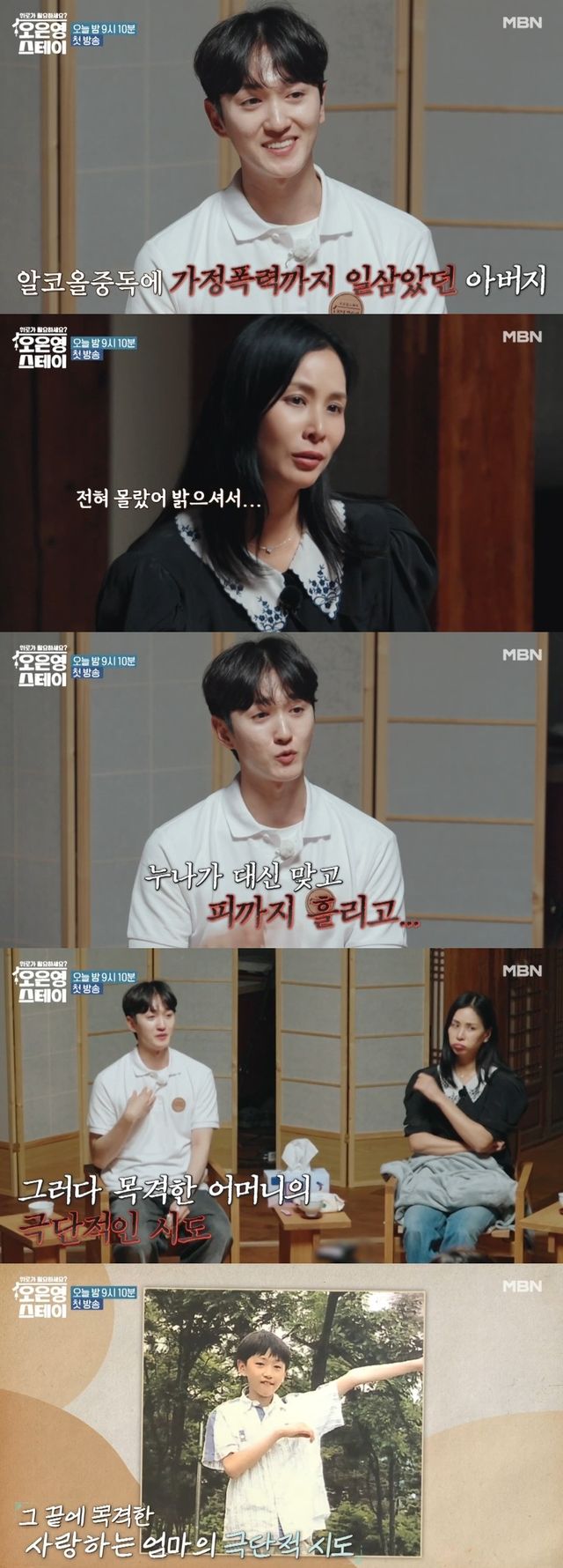 그는 "경찰이 오고, 아빠는 칼과 가위를 집어던지니까 초등학교 때는 그걸 숨긴 기억밖에 없다"고 털어놨다.