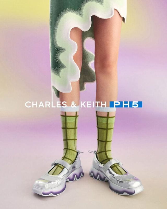 찰스앤키스와 PH5의 협업 슈즈 라인은 세 가지 디자인으로 출시됩니다. 섬세한 소재와 구조적인 힐이 조화로운 ‘나일론 웨이브 헴 샌들’부터 물결 모양의 아웃솔이 특징인 ‘그라데이션 웨이브 뮬’, 미래적인 디테일이 돋보이는 ‘매쉬 그라데이션 메리제인 스니커즈’로 구성되었죠. 또한 찰스앤키스의 대표 아이템인 ‘토니 크레센트 호보 백’도 새롭게 만나볼 수 있었는데요. PH5의 감각으로 재해석되어 ‘토니 그라데이션 매듭 백’으로 새롭게 탄생했습니다. 그린과 퍼플 톤 그라데이션이 생동감을 더했고, 부드러운 곡선 형태와 매듭 핸들 디자인이 매력적인 실루엣을 선보였죠.