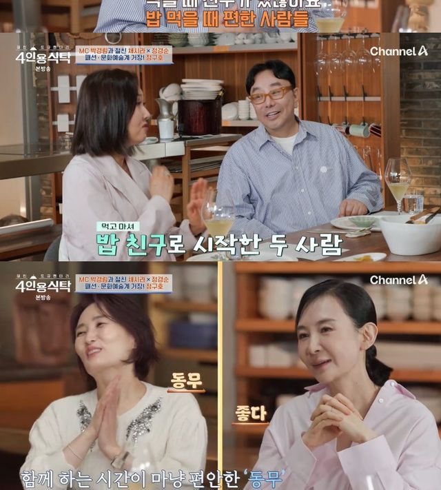 23일 방송된 채널A '절친 토큐멘터리 - 4인용식탁'에서는 이날 MC로 방송에 합류한 박경림이 크리에이티브 디렉터 정구호와 절친 채시라, 정경순을 만났다.