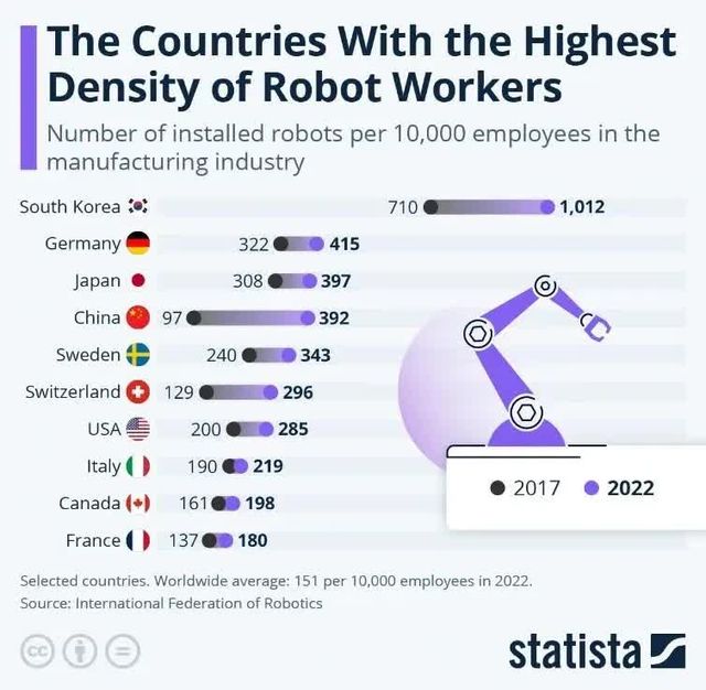 인간을 기계로 가장 많이 대체하는 나라