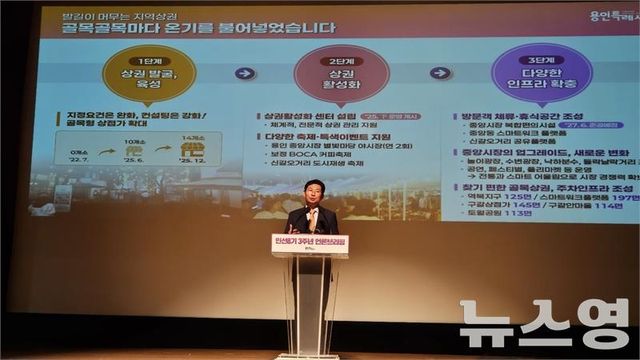 이 시장은 25년 난제였던 경안천 수변구역 해제(2024년 11월), 삼가2지구 힐스테이트 아파트 진입로 문제 해결, 동백IC 개설 확정, 옛 경찰대 터 개발 정상화, 지방도 315호선 공사 재개, 플랫폼시티 개발이익 용인에 재투자 명문화 등을 주요 난제 해결 성과로 제시했다.