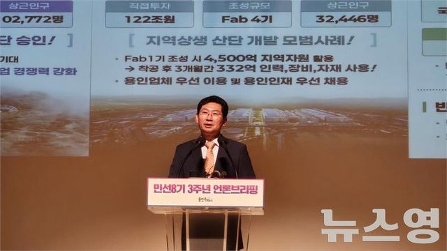 (뉴스영 이현정 기자) 이상일 용인특례시장은 23일 민선 8기 3주년 언론 브리핑을 통해 "지난 3년간 첨단시스템 반도체 국가산업단지 유치, 반도체 벨트에 대한, 국가첨단전략산업 특화단지 지정, 반도체 특화 신도시 조성 확정 등 용인 대도약의 기틀을 닦았고, 송탄상수원보호구역과 경안천 수변구역 해제, 옛 경찰대 문제 해결, 플랫폼시티 개발이익의 용인 재투자 관철 등 난제들을 해결했다"며 "용인은 향후 글로벌 반도체 중심도시로 대한민국의 미래를 이끌 것이며, 인구 150만의 광역시로 발전할 것"이라고 말했다.