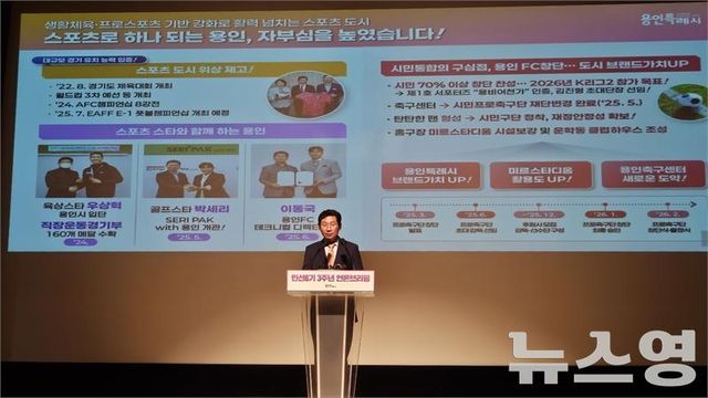 이상일 시장은 시의 브랜드 이미지를 제고하는 데 보탬이 될 '용인FC'(가칭) 창단을 포함해 문화·예술·체육 부문 투자를 확대하고 3개 구에 랜드마크 공원을 조성하는 계획도 소개했다.