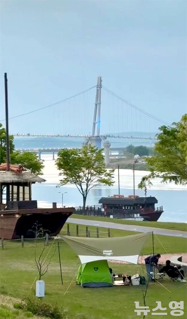 여주출렁다리와 캠핑장이 보이는 인증샷 모습/사진=여주도시공사
