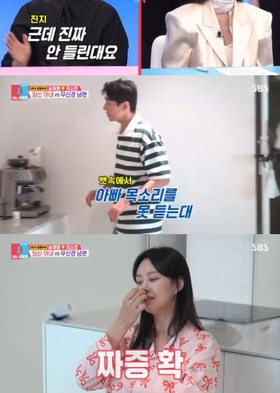송재희의 모습을 본 지소연은 "저는 아이와 보낼 수 있는 시간이 아침 1시간, 밤 2시간이 전부다. 오빠한테 말이 느린 아이를 위해서 대화도 좀 해주고, 눈도 맞춰주고 이렇게 해주길 바랐다. 그런데 아이가 소리치면서 불러도, 오빠는 설거지를 먼저 해야한다"고 했다.