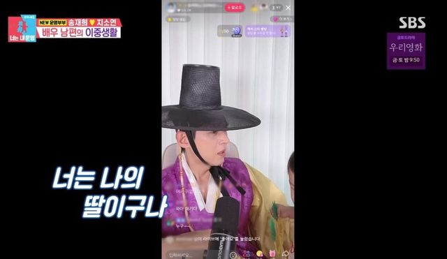 이날 송재희는 지소연과 딸이 자는 동안 아침부터 라이브 방송으로 팬들과 소통을 했다. 송재희는 라이브 방송 중 딸이 찾아오자 당황해 “너는 누구냐? 너는 나의 딸이구나. 나와 남보라의 딸이구나”라고 무근본 애드리브를 날렸다.