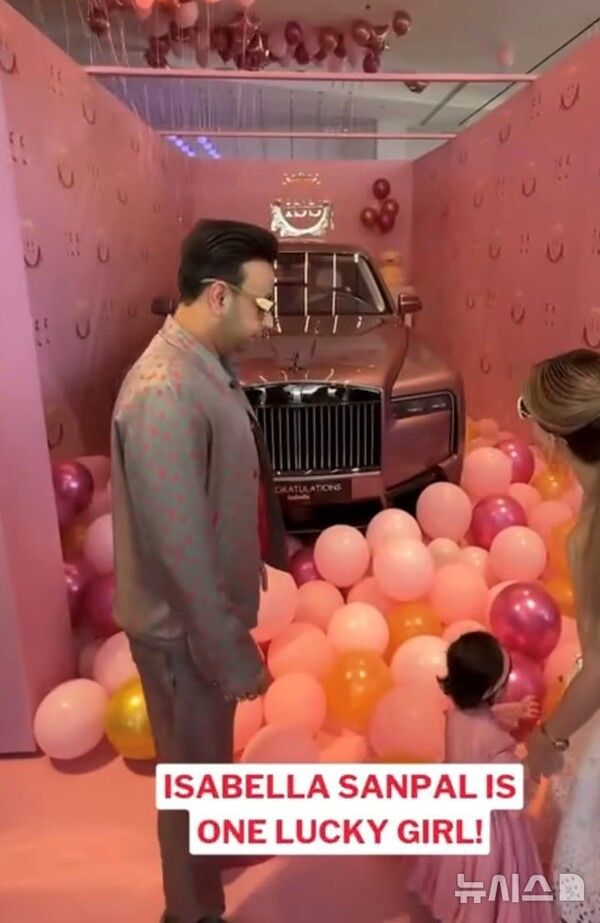뉴시스 보도에 따르면, 22일(현지시각) 프리프레스저널에 따르면 ANAX 디벨롭먼트 창립자 사티시 산팔이 딸 이사벨라의 첫 번째 생일을 맞아 맞춤형 분홍 롤스로이스 차량을 선물했다. 해당 차량은 영국에서 특별 제작돼 아랍에미리트로 배송된 것으로 알려졌다.