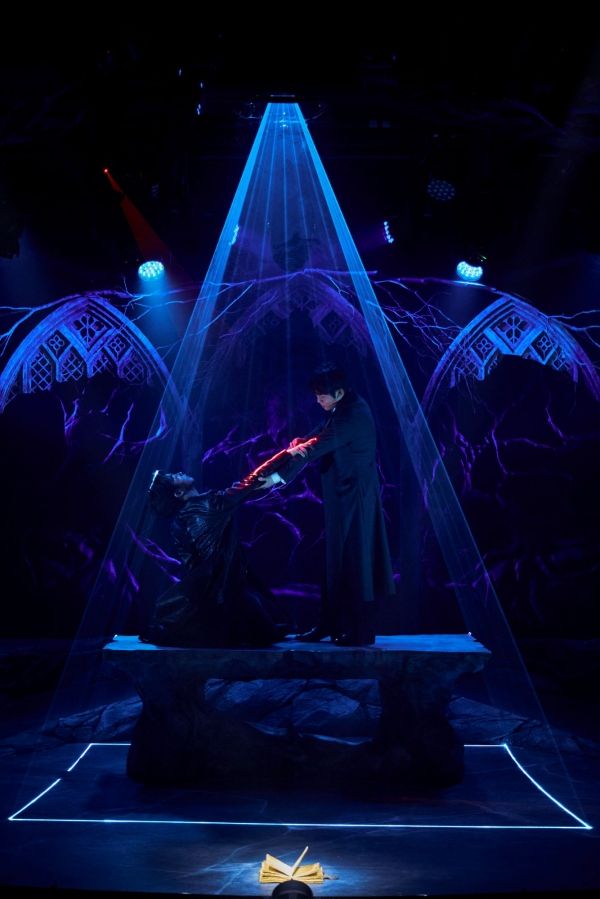 연출도 눈길을 끈다. 곡선 무대를 활용해 공간감을 확장하고, 레이저 커팅 가공법으로 나무의 뿌리와 가지 등이 얽힌 장치를 통해 '생명창조'를 무대 자체에 반영했다. 또한 레이저 조명을 적극 활용해 장면의 긴장감을 불러일으켰다.