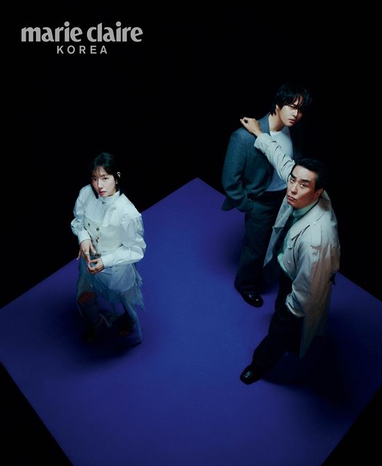 반면, 단체컷을 촬영한 푸른 공간은 작품 속 주요 공간인 바다를 떠오르게 한다. 각기 다른 포즈로 위를 바라보는 세 사람의 모습은 돈 되는 건 뭐든지 하는 행동대장 오관석(류승룡), 돈 맛에 눈 뜬 신출내기 오희동(양세종), 돈 굴릴 줄 아는 흥백산업 안주인 양정숙(임수정) 사이의 긴장감 넘치는 관계를 암시한다.