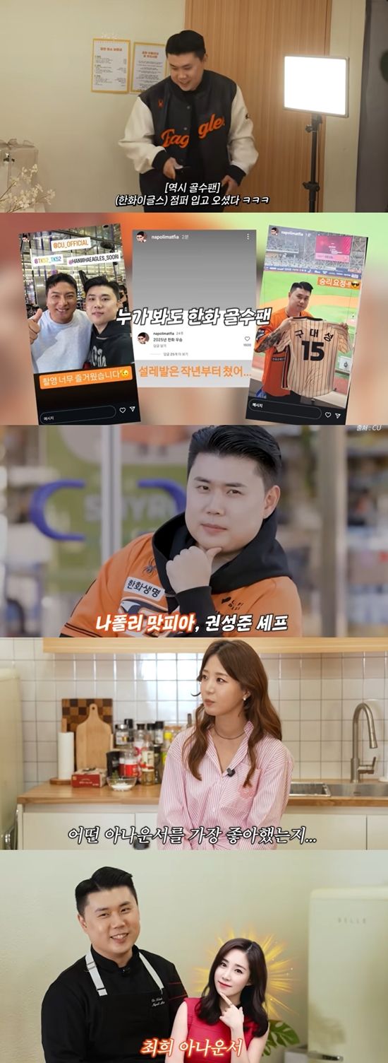 오늘의 게스트는 나폴리 맛피아 권성준 셰프였다. 그는 찐팬답게 한화이글스의 잠바를 입고 나타났다. 친근하게 느껴진다는 배지현에 권성준 셰프가 "제가 류현진 선수를 닮았다는 얘기를 들었다"라고 밝혔다.