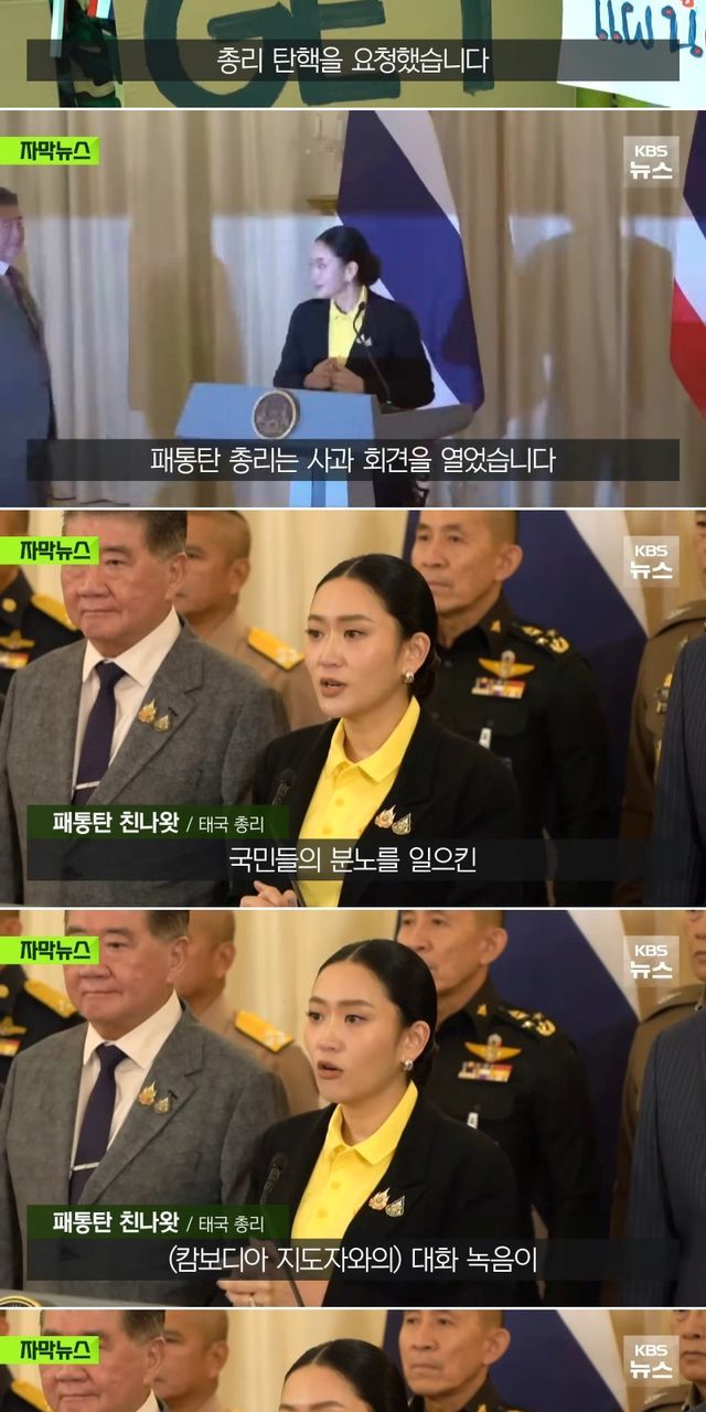 통화한 내용이 유출돼 사퇴 압력을 받고 있는 태국 총리