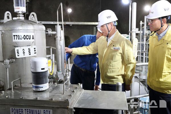김동섭 한국석유공사 사장이 울산비축기지를 방문해 중동발 석유위기에 대비한 비상방출태세를 점검했다.