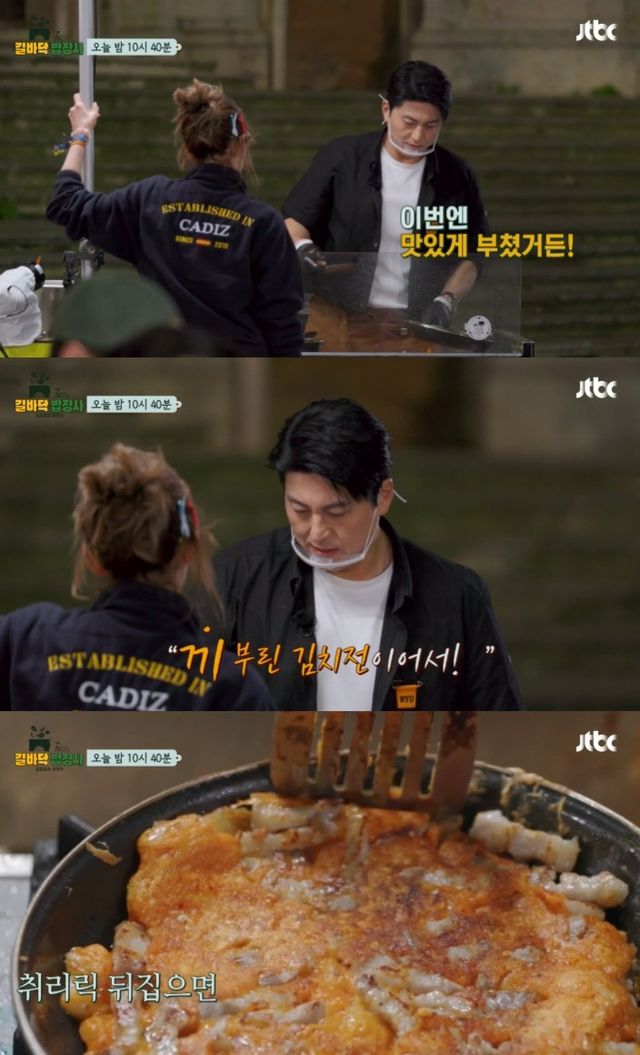 김치전을 주문한 '한국인 전여친' 손님에 류수영은 뒤집기 실력을 선보였고 바삭한 김치전이 완성됐다.