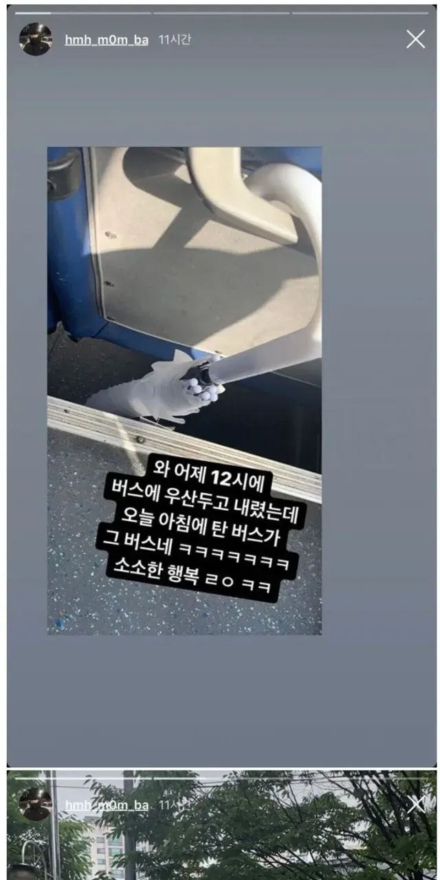어젯밤 버스에 우산 두고 내렸는데 오늘 아침 똑같은 버스 타서 되찾음,,