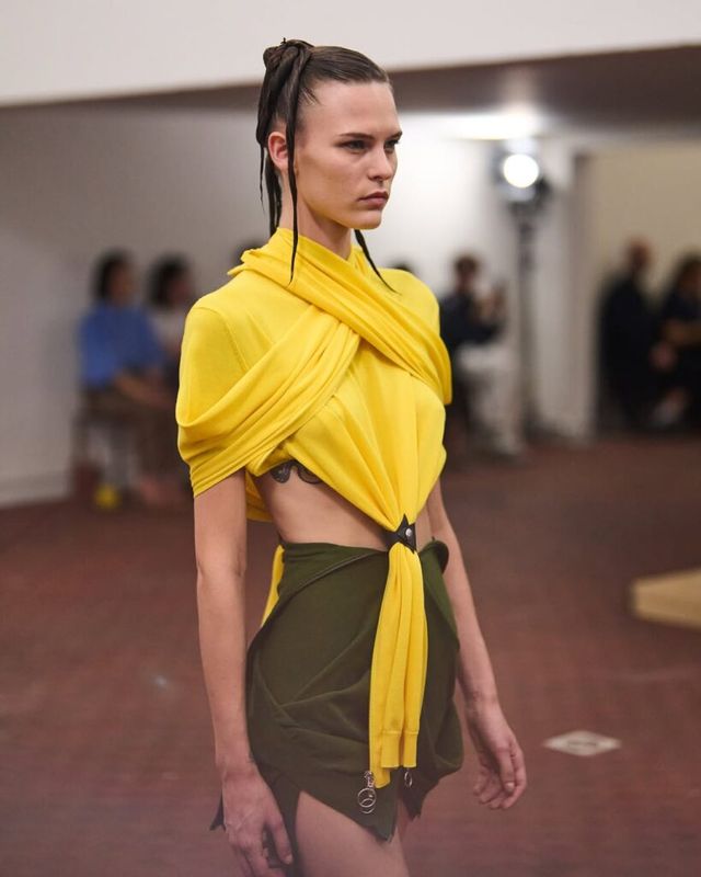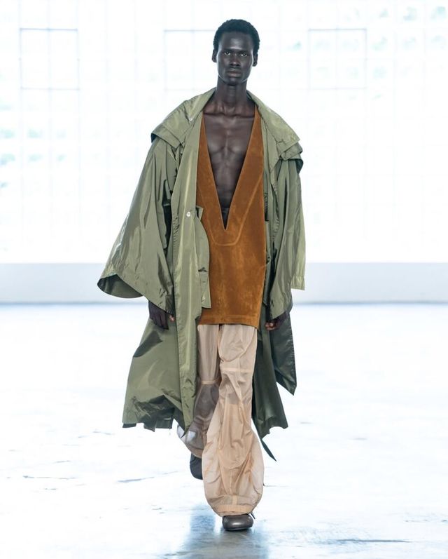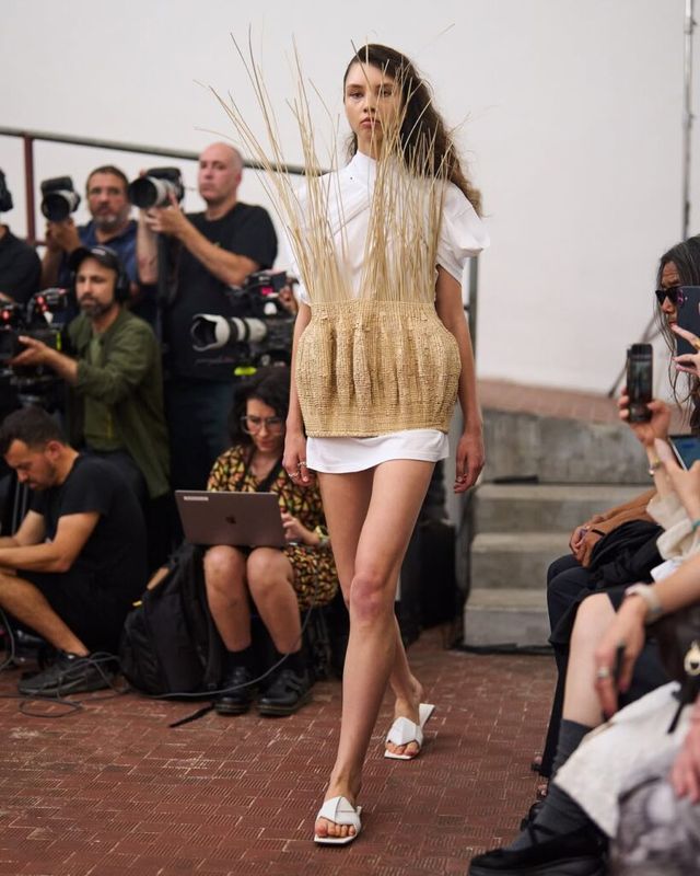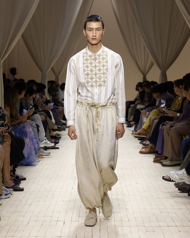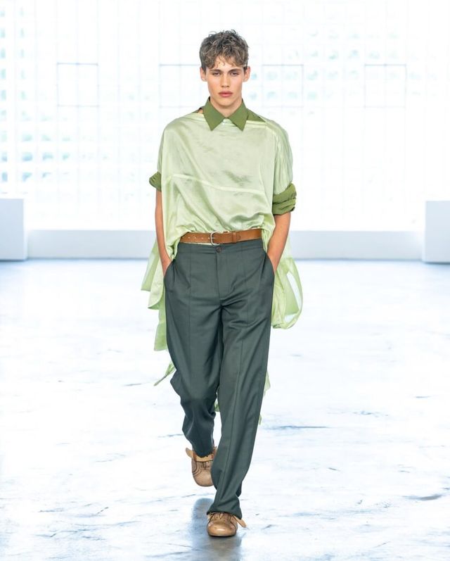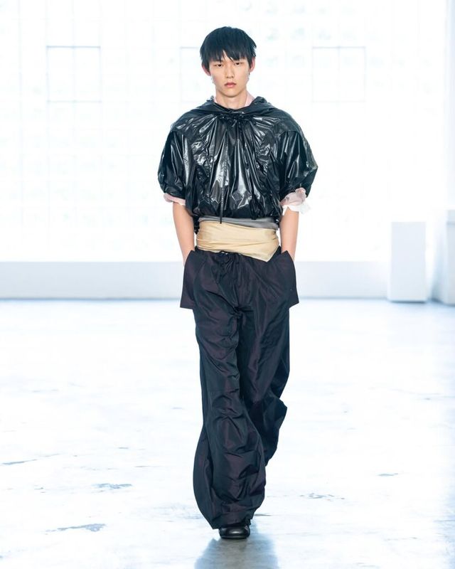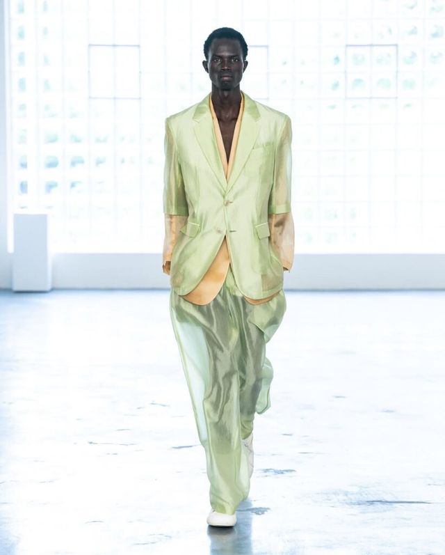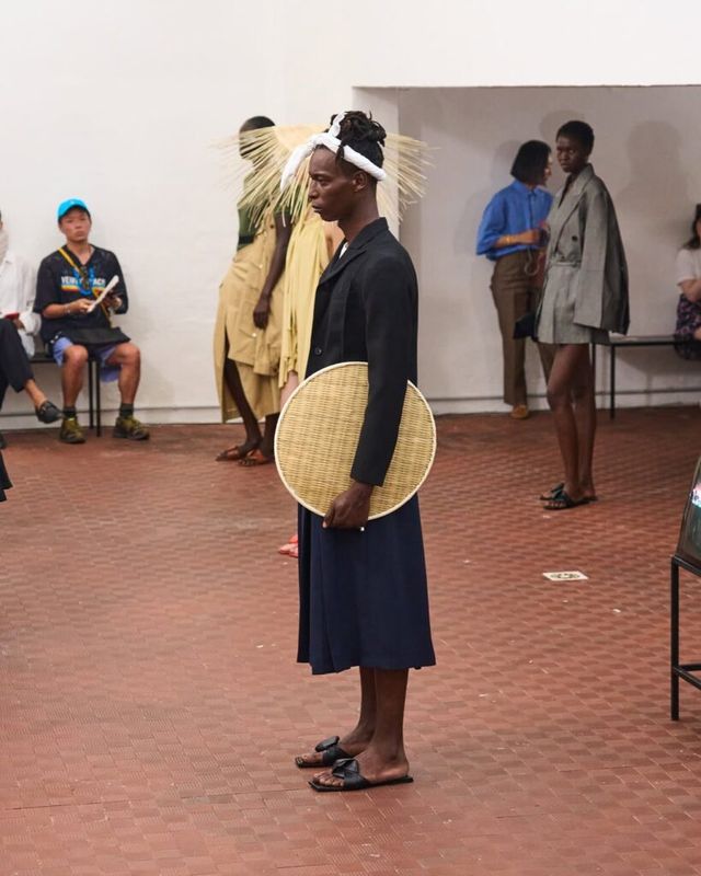 2023 LVMH 프라이즈 우승자인 사토시 쿠와타(Satoshi Kuwata)의 셋추(Setchu)는 짐바브웨의 빅토리아 폭포 여행에서의 경험을 컬렉션으로 풀어냈습니다. ‘혼합’을 의미하는 브랜드명처럼, 야자수를 연상케 하는 전통 공예법과 유려한 드레이핑을 엮어냈죠. 셔츠와 재킷 등 기존의 아이템들은 그의 손길 끝에서 해체되고 새로운 형태로 재해석되었습니다.