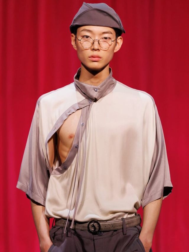 프로나운스(Pronounce)를 전개하고 있는 디자이너 유산 리와 쥔 저우는 이번 컬렉션을 하늘 위로 띄워 보냈습니다. 중국 전통의 ‘연(Kite)’에서 영감받아 제작된 룩은 움직임에 따라 흐르는 듯한 실키한 패브릭의 드레이핑이 도드라졌는데요. 특히, 스카프처럼 묶어 연출한 칼라는 정제된 젠더리스 룩의 미학을 드러냈습니다.