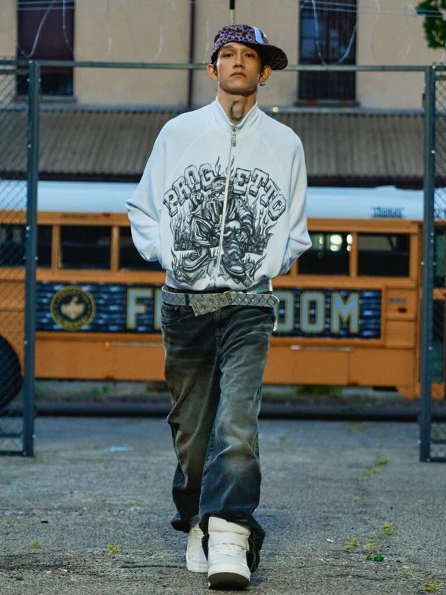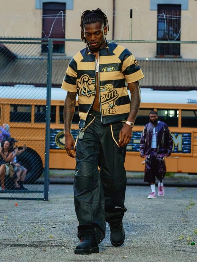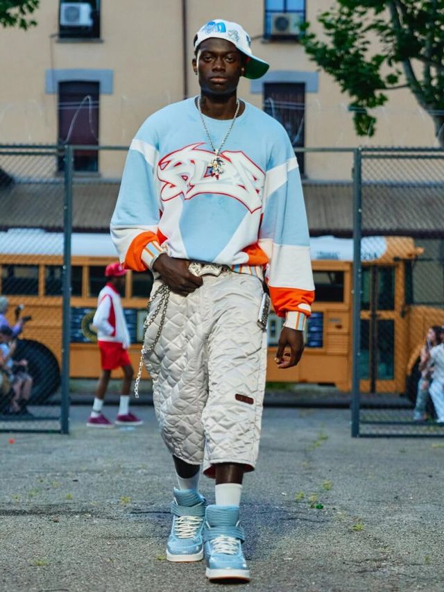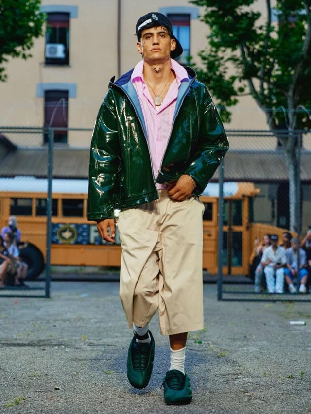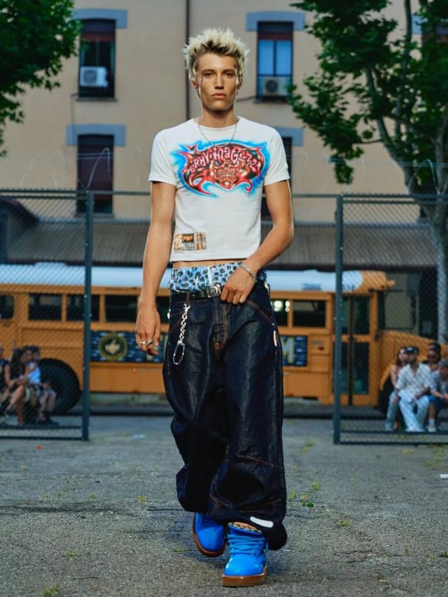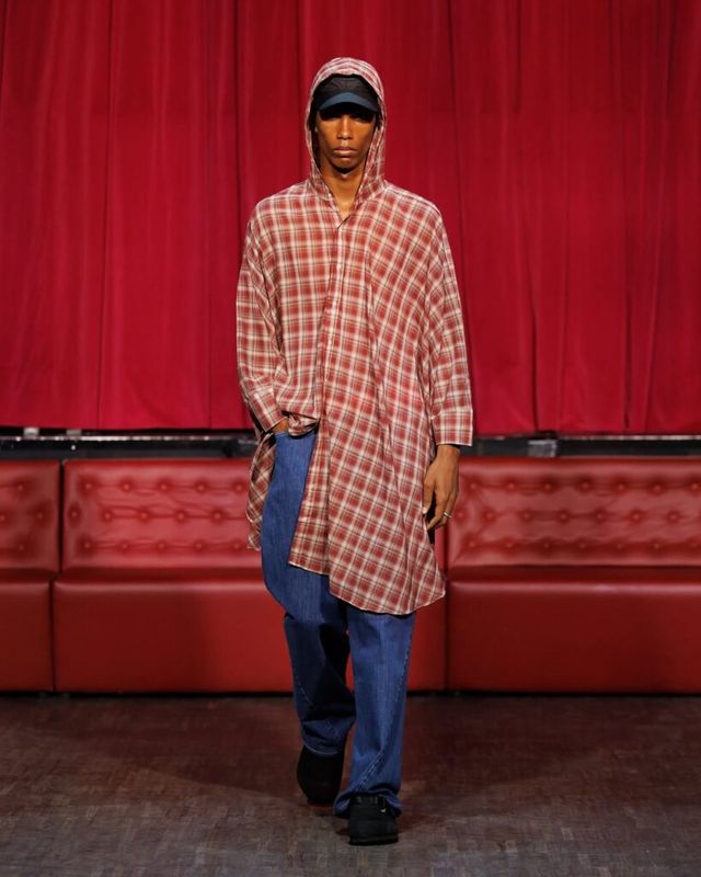 도메니코 포르미체티(Domenico Michetti)의 PDF는 ‘FREE-DOM’을 향해 포효했습니다. 감옥 안의 죄수를 연상케 하는 연출뿐만 아니라 모델들의 틀에 박히지 않은 워킹은 억압된 내면으로부터의 자유와 분출을 드러냈죠. 신체의 형태를 가늠할 수 없을 만큼 오버사이즈의 아이템과 한껏 내려 입어 바지를 부여잡은 새깅 스타일은 2025년 뉴 쿨-키즈의 등장을 알렸습니다.