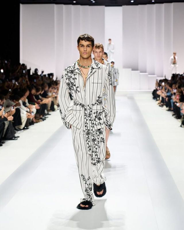 ‘파자마 보이즈(PYJAMA BOYS)’라는 테마로 풀어낸 이번 시즌 돌체앤가바나(Dolce&Gabbana). 넉넉한 실루엣과 가벼운 소재의 파자마를 일상복으로 전환시켜 인도어와 아웃도어의 경계를 허물었습니다. 뉴트럴 컬러와 구겨진 듯한 소재, 핀 스트라이프 패턴 등 여러 요소가 더해진 파자마에 볼드한 액세서리를 더해 상반되는 두 스타일의 조화를 제안했죠.