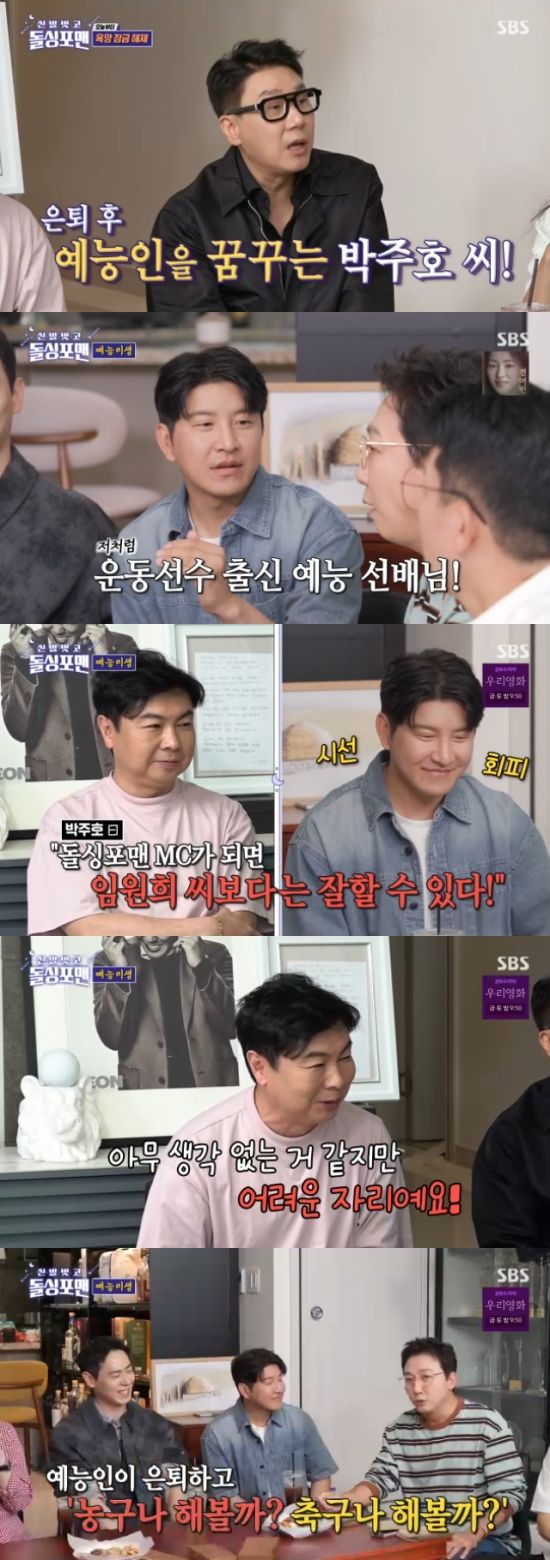 특히 이상민은 "박주호 씨가 '돌싱포맨' MC가 된다면 임원희 보다는 잘 할 것 같다고 했다는데?"라고 했고, 이를 들은 임원희는 "이 자리가 쉬워보여도 그렇지 않다. 아무 생각 없이 앉아있는 것 같아도 어렵다"면서 억울해했다.