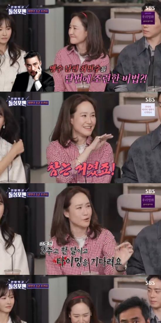 그리고 이날 강주은은 남편 최민수를 조련한 비법으로 "참는 것"이라고 했다. 강주은은 천 번을 참고, 한방에 멕이는 기술을 쓴다면서 "누가 봐도 화가 나는 상황에서도 참는다. 처음에는 남편이 '눈치를 못챘나? 모르나?'라고 생각을 한다. 저는 이후에 타이밍을 노린다. 그걸 당하면 남편이 이주 소름끼쳐한다"면서 웃었다.