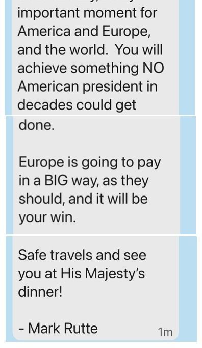 뤼터 총장은 또 문자 메시지에서 "헤이그에서 또 하나의 큰 성공을 거두게 될 것"이라며 "우리 모두 5%에 서명하게 만들었다"고 강조했다.