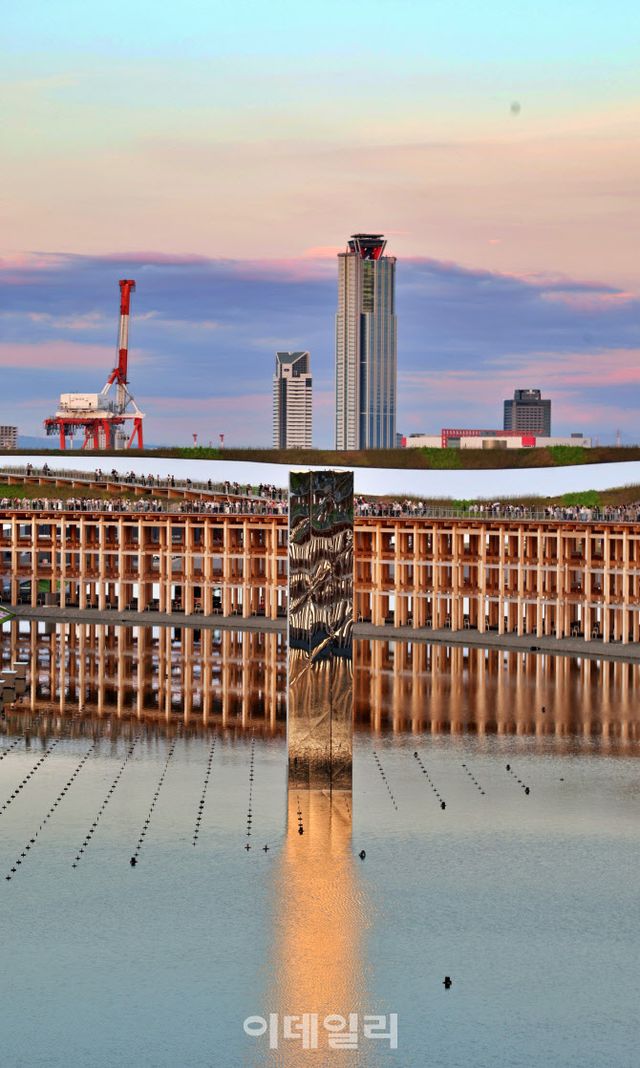 [오사카(일본)=글·사진 이데일리 강경록 기자] 전철이 스카이브리지를 따라 오사카만(灣)을 가로지르는 순간, 창밖으로 한 섬이 모습을 드러낸다. 이름부터 ‘꿈의 섬’을 뜻하는 유메시마(夢洲). 그 꿈의 시작은 불편한 진실에서 출발했다. 준설토와 산업 폐기물이 퇴적된 매립지, 도시가 밀어낸 잔해들을 쌓아 만든 이 인공섬은 오랫동안 ‘도시의 뒷면’으로만 존재해 왔다. 그 유메시마가 이제는 세계의 미래를 이야기하는 ‘2025 오사카·간사이 엑스포’(엑스포)의 무대가 됐다.