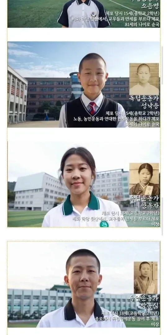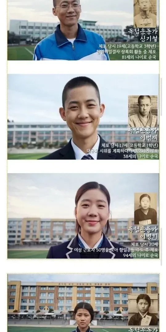 [스압] 독립운동가 사진을 AI로 현대 학생 처럼 .jpg,,