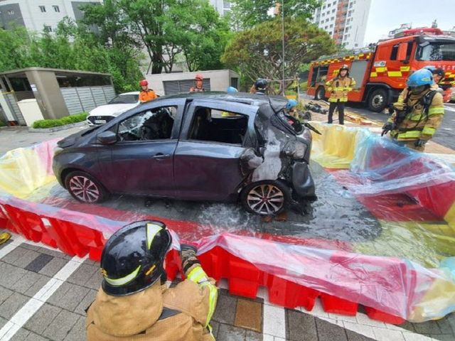 소방당국은 차주로부터 “전기차 충전 중 차에 불이 났다”는 내용의 119신고를 받고 현장에 출동, 화재 발생 10분여 만인 오전 8시 10분께 큰 불길을 잡았다