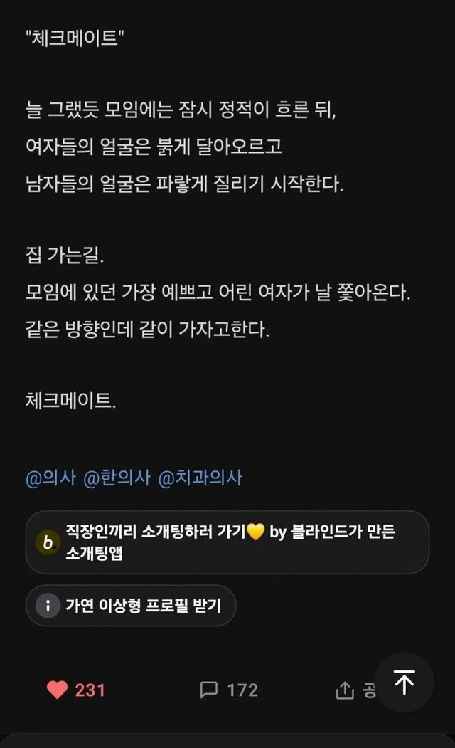 이처럼 대단한 자부심은 글 말미에 해시태그로 마무리된다. 그는 #의사 #한의사 #치과의사 등 3개의 해시태그를 걸며, 의사 업종에 비해 현대차 사무직이 결코 꿀리지 않는다는 뉘앙스를 풍기며 글을 마무리한다.