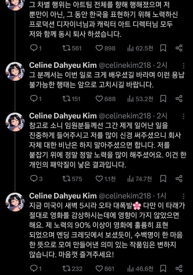 흠 스파이더맨도 비슷한 이유로 아티스트들 대거 퇴사했는데 케데헌도 아쉽게 됐네