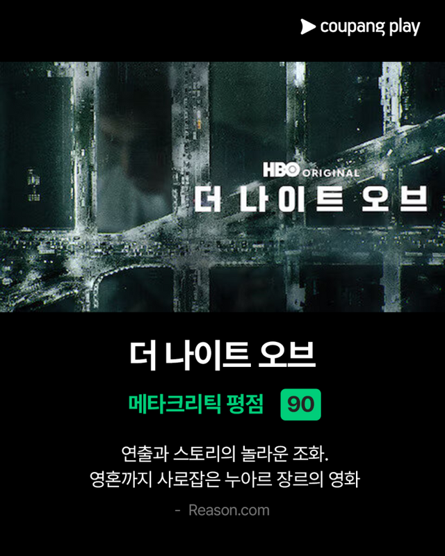 쿠팡플레이가 콘텐츠 유목민들을 위해 할리우드 평론가들을 사로잡은 작품 4선을 소개했다. 미국을 포함한 영어권 평론가와 다양한 유저들의 평가를 집계하는 대표 사이트 메타크리틱(Metacritic)에서 높은 평점을 기록한 바 있는 작품들로, 시청자들의 만족도를 수직 상승시켜 줄 것이다.