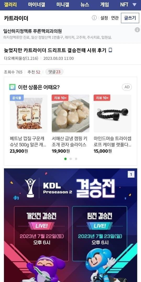 고수:오프라인 리그 결승전에서 카트,블아까내리며 개고기 홍보하기