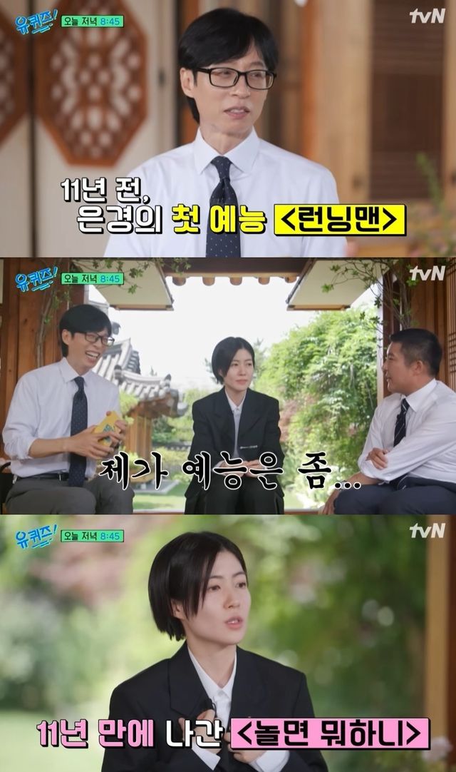 이날 유재석은 "심은경이 '런닝맨' 나왔을 때 너무 고생했다. 그게 심은경의 첫 예능이었다"고 운을 띄웠다.