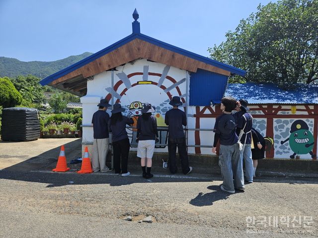 ‘벽화 그리기’ 봉사를 한 디자인공학 전공 박준병 학생은 “청라면이 과거 탄광 마을이었다는 이야기를 듣고, 이곳의 기억과 정체성을 담아내야겠다고 생각했다”며 “어두운 터널을 지나 빛으로 나아가는 광부의 모습을 밝고 따뜻한 색감으로 표현했는데, 마을분들께 작은 희망이 되길 기원한다”고 말했다.