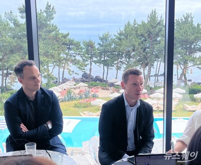 (왼쪽)킬리안 텔렌 벤츠코리아 부사장과 (오른쪽)마티아스 바이틀 벤츠코리아 대표이사 사장. 사진=황예인 기자.